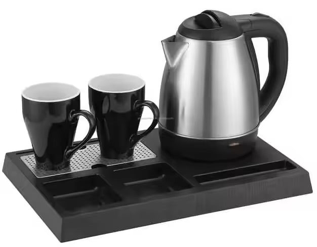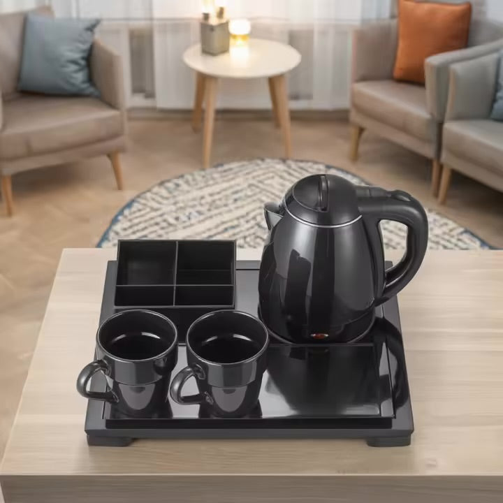 يحتوي على غلاية كهربائية عالية الجودة، مع أكواب سيراميك وصينية تقديم أنيقة – مثالي للمكاتب، غرف النوم، أو حتى استقبال الضيوف في المنزل.